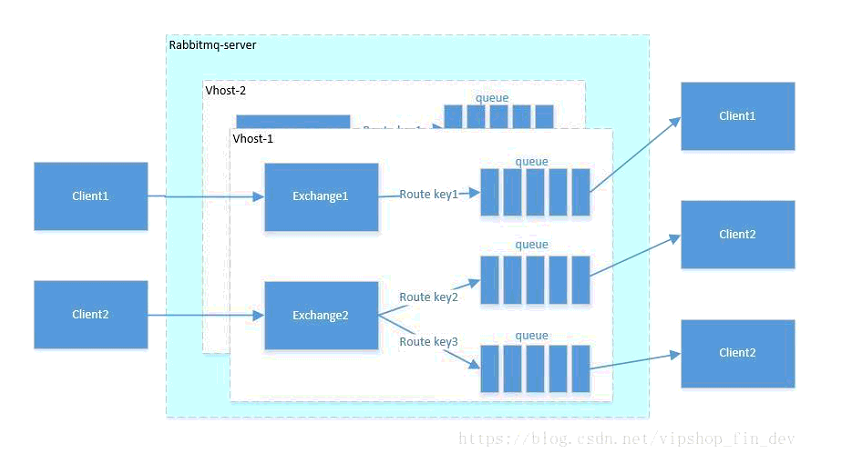 Virtual Host:虚拟主机,表示一批交换器、消息队列和相关对象。虚拟主机是共享相同的身份认证和加密